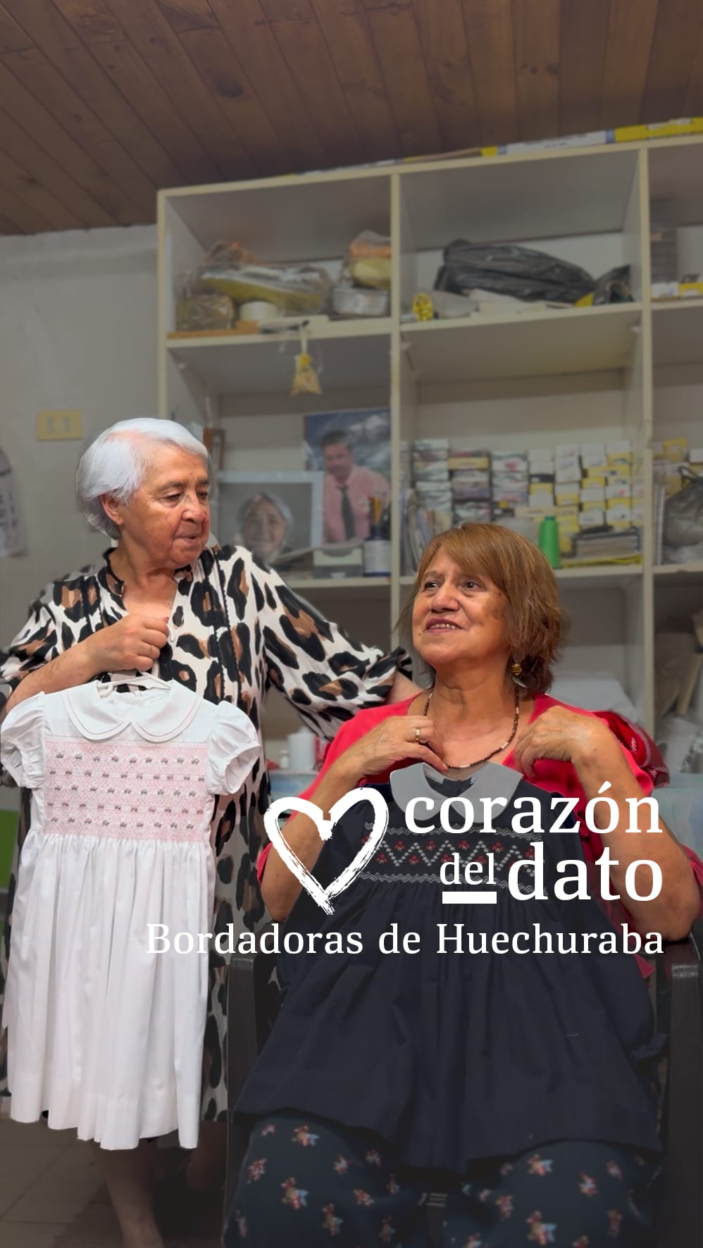 Anita y María son de las antiguas bordadoras de Conchalí, hacen vestidos a pedido por whatsapp y también tienen stock en sus talleres en Huechuraba. Anita también hace clases de Punto Smock.